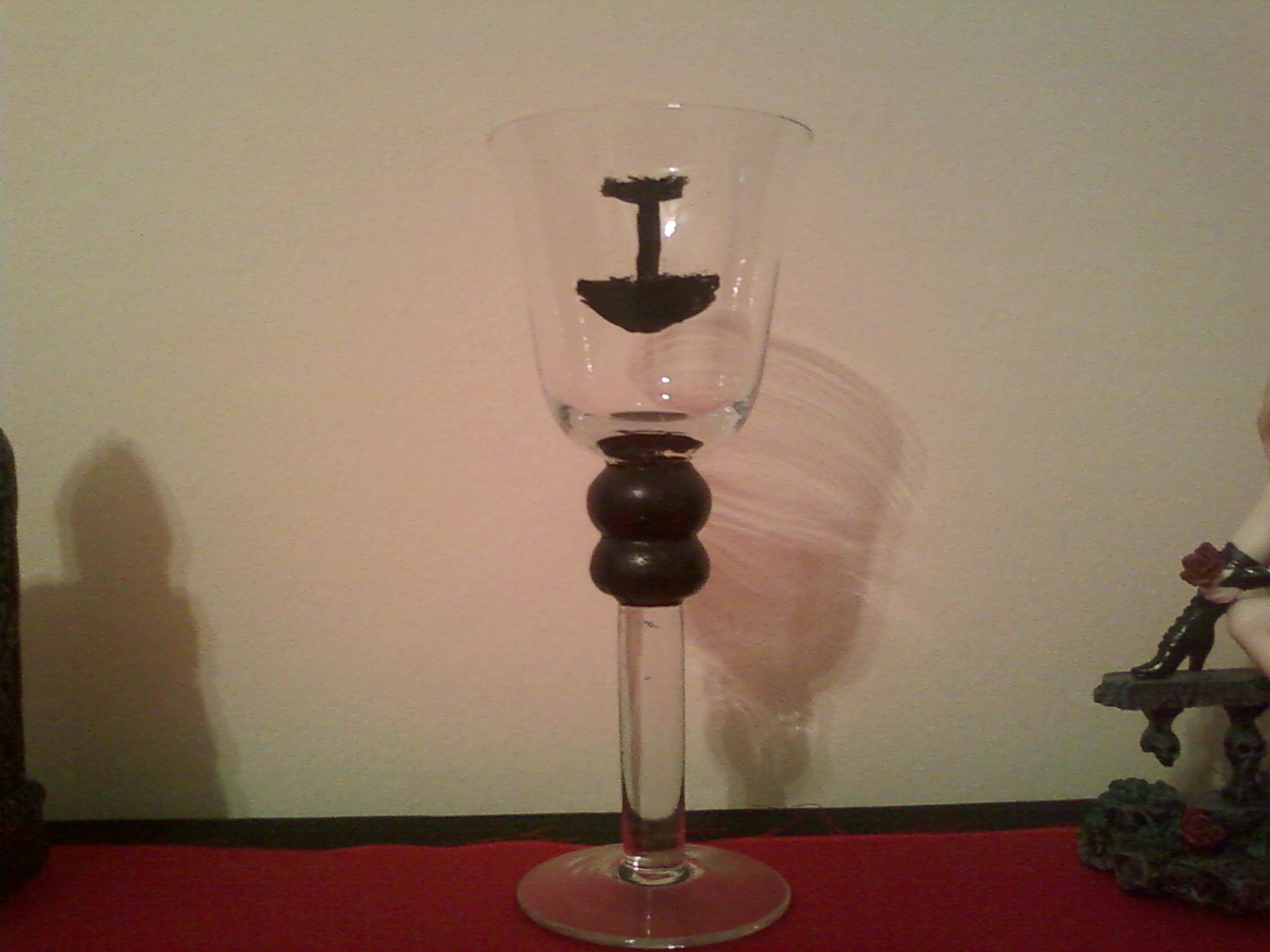 Most of what I did was touch up the black paint on the stem of the glass, since it had been rubbed off or something, and paint a Mjolnir on it. It’s a bit rough, both because I do not have a lot of skill when it comes to things like drawing and painting designs, and because my brush was turning frizzy.