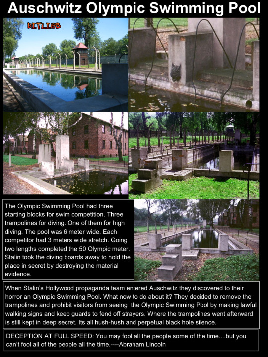 The swimming pool would have been for SS Killers/Murderers only… even the arrogance of the podium or winners stand (not in usual Olympic dice figuration) so which ever evil person who won the swimming race would stand the tallest! Its beyond shocking …plus i have heard its not the only swimming pool that there was built and built purely for the recreation of those seriously nasty people that certainly were NOT Jewish and NOT innocent souls …who, i am sad to say, enjoyed themselves there at Auschwitz. 😦