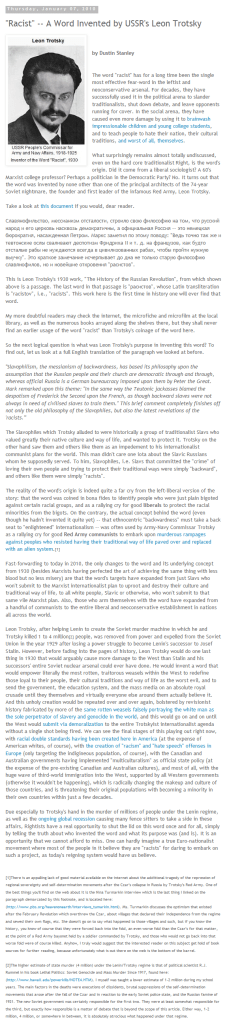 Another fun fact, Trotsky appears to have invented the word “Racist!” He used it to describe “Serbophiles” which basically means “Serbs who refuse to give up their traditional ways for the Revolution,” and denounced these people as “racists.” Much in the same way that many people are now called Racists because they don’t want to give up their traditional homeland and its culture.